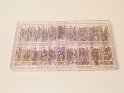 A very useful set of 200 stainless steel tap end pins for Straps and Clasps. These quality bars and tap ends are an extremely handy accessory to your tool kit. Ranging in sizes from 12mm to 30mm in length and 1.3mm diameter. There are approx 10 of each size. There are two colours in this set; gold and silver.Technical specifications