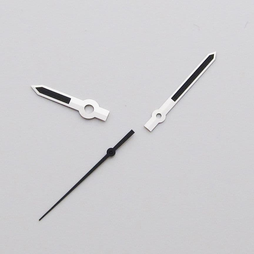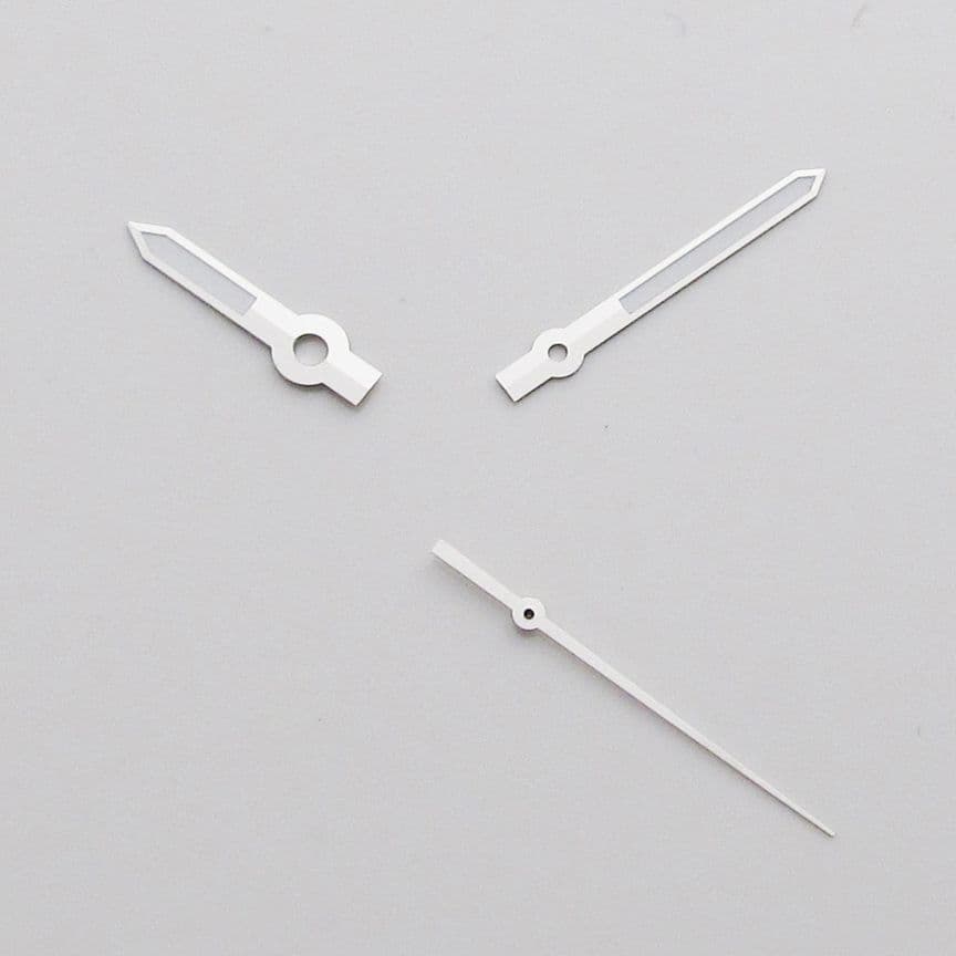 A set of Silver coloured replacement hands for Mido's movement number ETA 2836. The set comprises of 1x Hour, Minute and Second hands. These hands are not made by Mido but are designed as after market replacements.Technical specifications