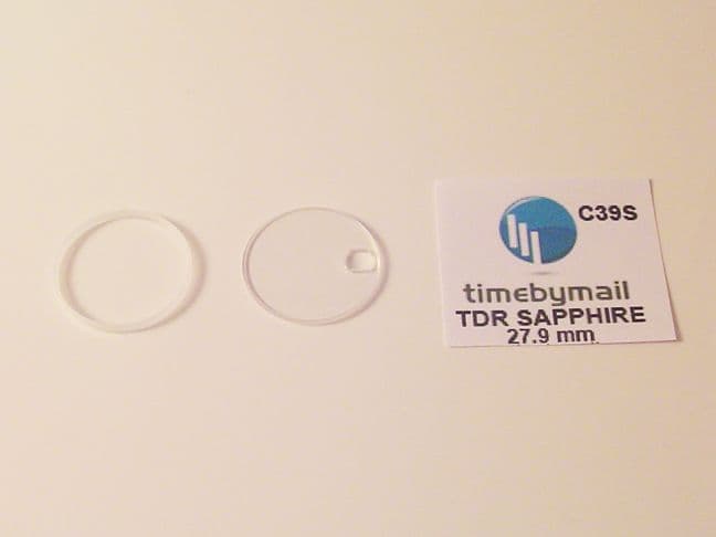 This NEW replacement 100% SAPPHIRE crystal is designed for the Tudor 74310 N ranges which require a flat glass with date window. It measures 27.9mm top diameter, 27mm bottom diameter and is made of quality Sapphire, The crystal has no magnification and has a clear view unlike some cheaper models on sale. The glass comes with the usual plastic gasket.